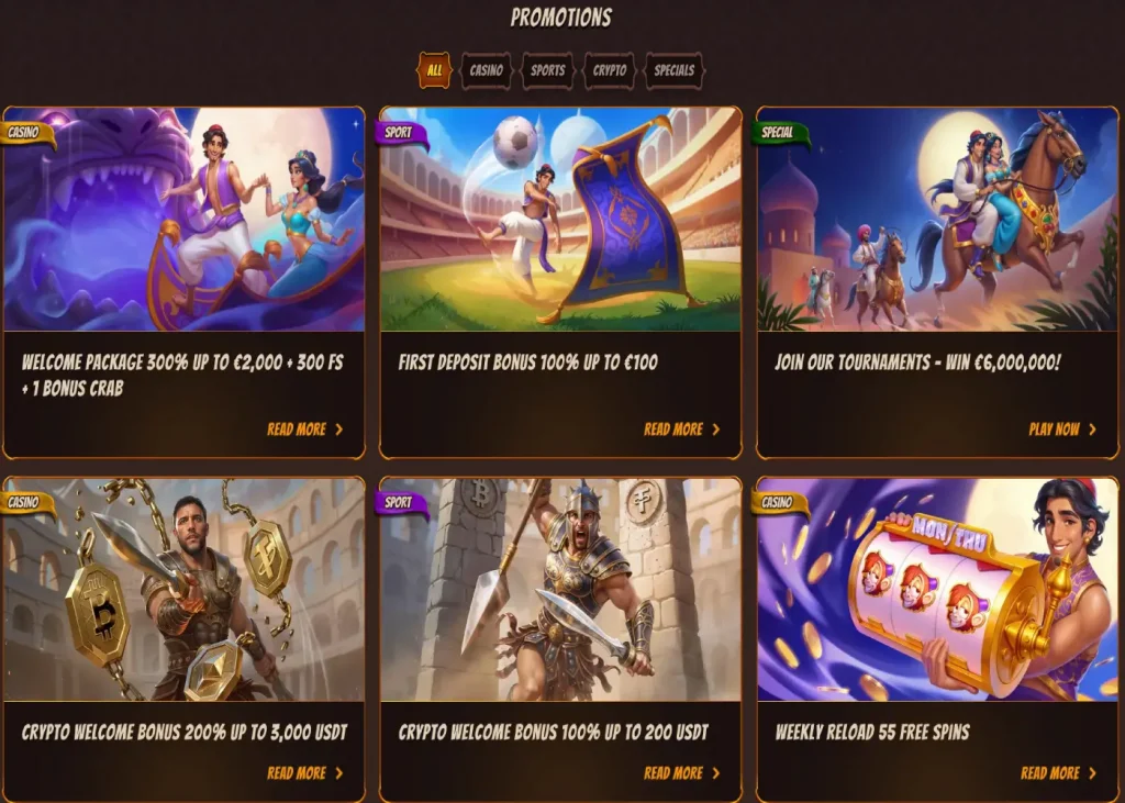 الكثير من الكازينوهات تعدك بالذهب، لكن علاوين يضع الذهب على الطاولة. العرض الترحيبي الرسمي للكازينو جاء متوازناً وسخياً.